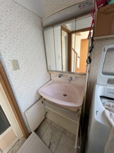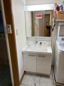 洗面ボウルが割れてしまい、水を流すと下まで染み出てしまうという不具合のあったS様邸
